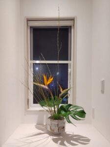 モンステラの面と行李柳の直線を
