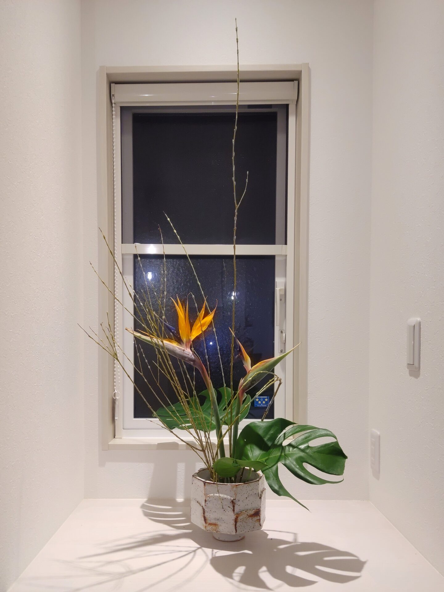行李柳の曲線を使って生けてみましたが、
