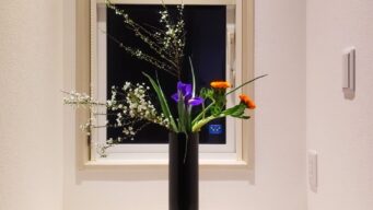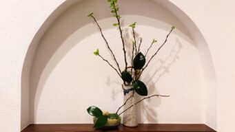 投入チャレンジ 雪柳を使った十文字留めで生けた花